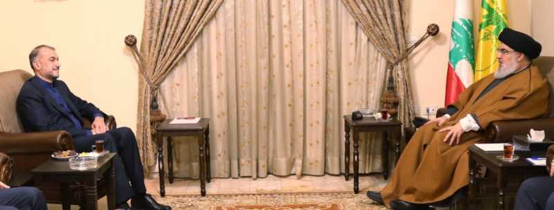 استقبل الأمين العام لحزب الله سماحة السيد حسن نصر الله وزير خارجية الجمهورية الاسلامية الايرانية، الدكتور حسين أمير عبد اللهيان والوفد المرافق له بحضور سفير الجمهورية الاسلامية الايرانية في بيروت السيد محمد جلال فيروزنيا حيث جرى استعراض آخر الأوضاع والتطورات السياسية في لبنان والمنطقة.
