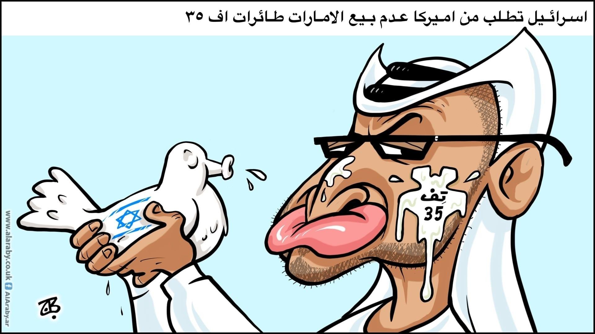 أوقف حجاج مساء الأربعاء بعد ساعات على نشره الرسم الساخر تحت تعليق "إسرائيل تطلب من اميركا عدم بيع الإمارات طائرات اف-35" يظهر ولي عهد أبو ظبي الأمير محمد بن زايد حاملا حمامة بيضاء رسم عليها علم اسرائيل بصقت في وجهه بينما كتب على البصاق "تف 35".