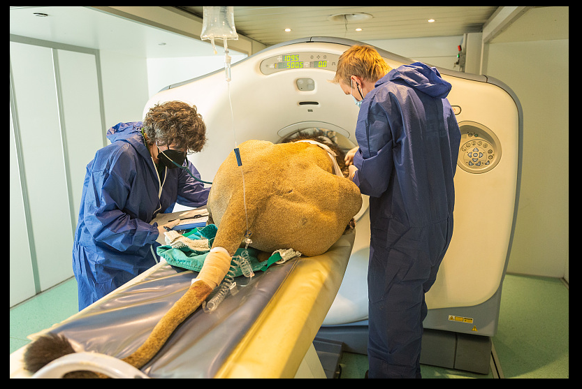 خضوع أسد مهدد بالانقراض إلى فحص أشعة مقطعية