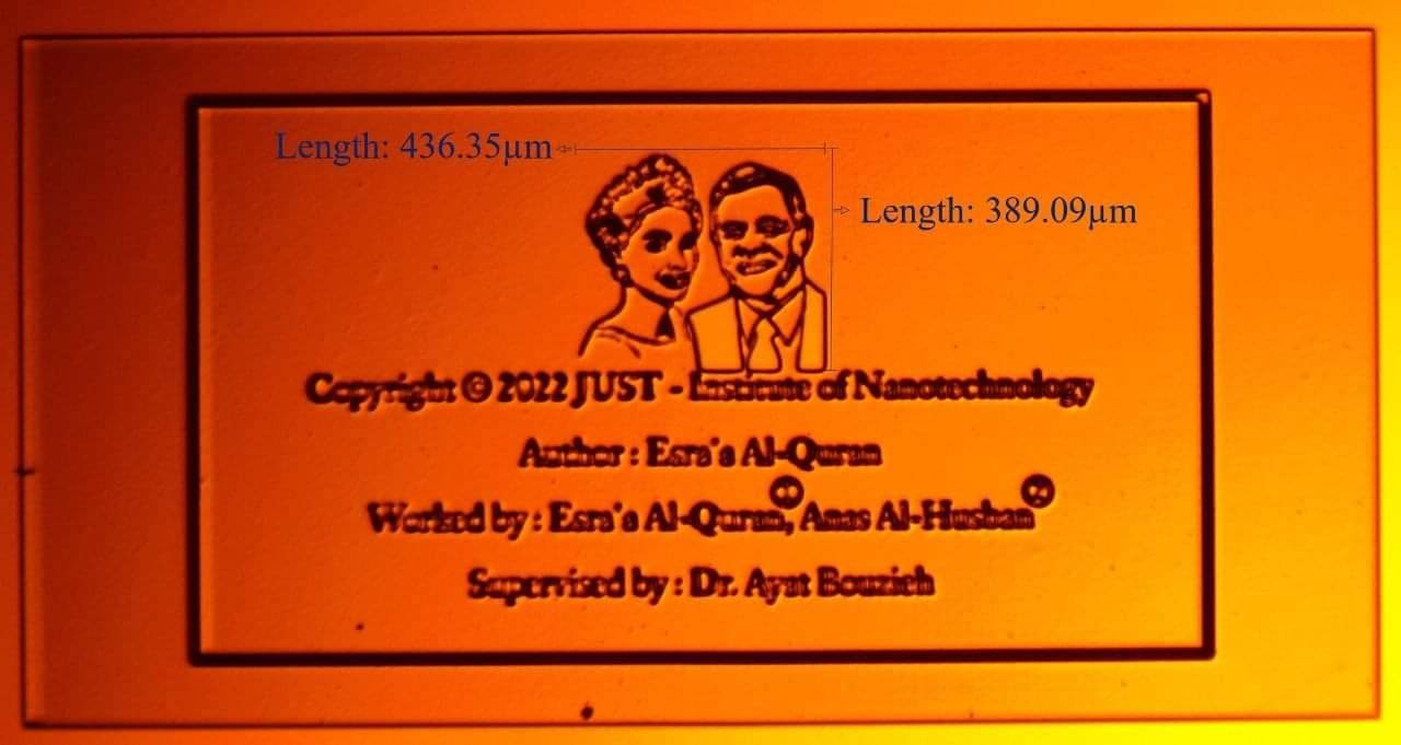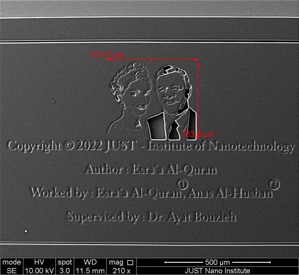 بمناسبة يوم ميلاد جلالة الملكة رانيا العبد الله والذي يصادف يوم الأربعاء الموافق 31/8/2022، قامت المهندسة إسراء طارق القرعان -طالبة ماجستير في معهد النانوتكنولوجي-، بإنجاز فريد من نوعه وذلك بتصميم وإبتكار أصغر صورة "حجمًا" في العالم.