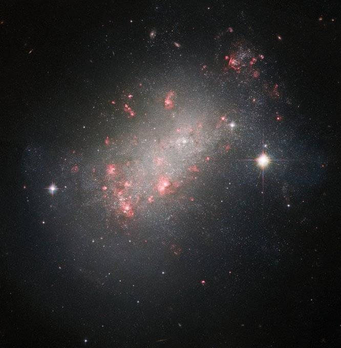 التقط تلسكوب هابل الفضائي مجرة قزمية شاركت ناسا صورتها و وصفتها بغير العادية حيث لها شكل مختلف عن العديد من المجرات المألوفة.