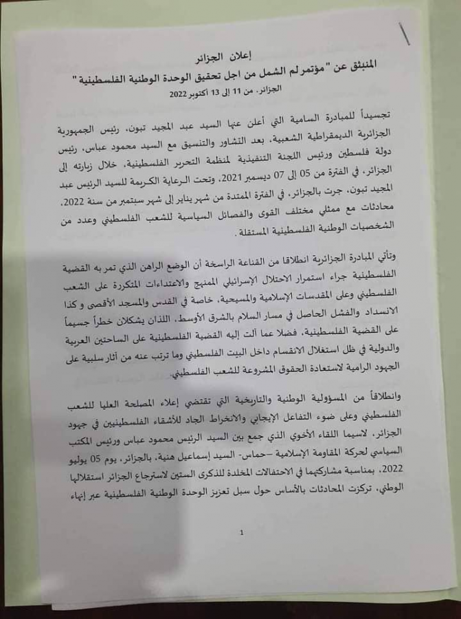 بيان الجزائر لم يختلف كثيرا عن مسودته الاولية واقتصر التغيير على حذف بعض العبارات الخلافية بهدف تمرير البيان لا اكثر ولا اقل , ومنها على سبيل المثال عبارة الاعتراف بقرارات الشرعية الدولية , وان جرى االتاكيد عليها لاحقا في الاتفاق على تشكيل حكومة الوحدة الوطنية حيث جرى التاكيد على التزام الحكومة بقرارات الشرعية الدولية ,