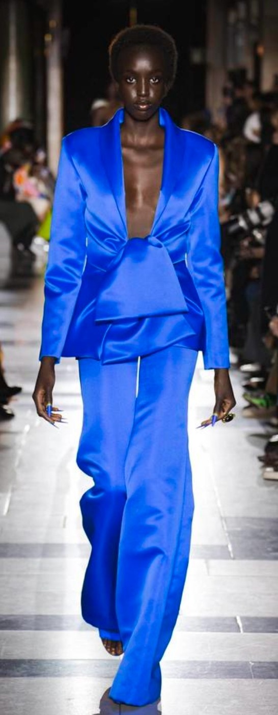 في حين أن كل ظل من درجات اللون الأزرق كان له لحظته على مدارج الخريف، نحن نحب بشكل خاص اللون الأزرق المنعش والأزرق الداكن، حيث كانت الألوان الزرقاء القوية النابضة بالحياة والجريئة هي التي لفتت انتباهنا حقاً والتي نراها بشكل ملحوظ على عدد كبير من المعاطف والفساتين الجميلة
