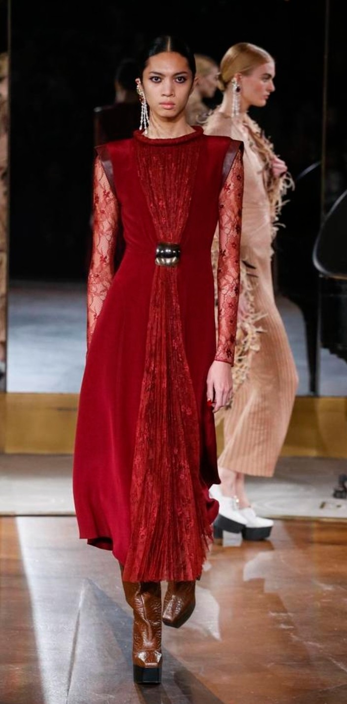 نحن لسنا غرباء عن رؤية اللون العنابي في الخريف وفي هذا العام، رأينا سلسلة من الظلال، من ألوان الكرز الأحمر الداكن إلى ألوان العنب العميقة والداكنة، شوهدت درجات الأحمر القوية على الإطلالات في مجموعة كبيرة من القوام والأقمشة من الجلدية إلى المحبوكات المريحة، مما أضاف لمسة متطورة إلى أزياء الخريف.