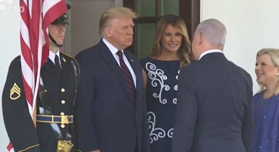وصول رئيس حكومة الاحتلال الإسرائيلي بنيامين نتنياهو وقرينته سارة إلى البيت الأبيض، حيث كان في استقبالهما الرئيس الأميركي دونالد ترامب وزوجته ميلانيا