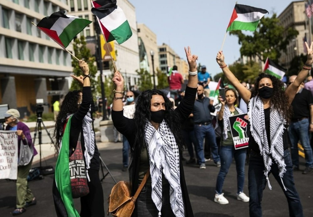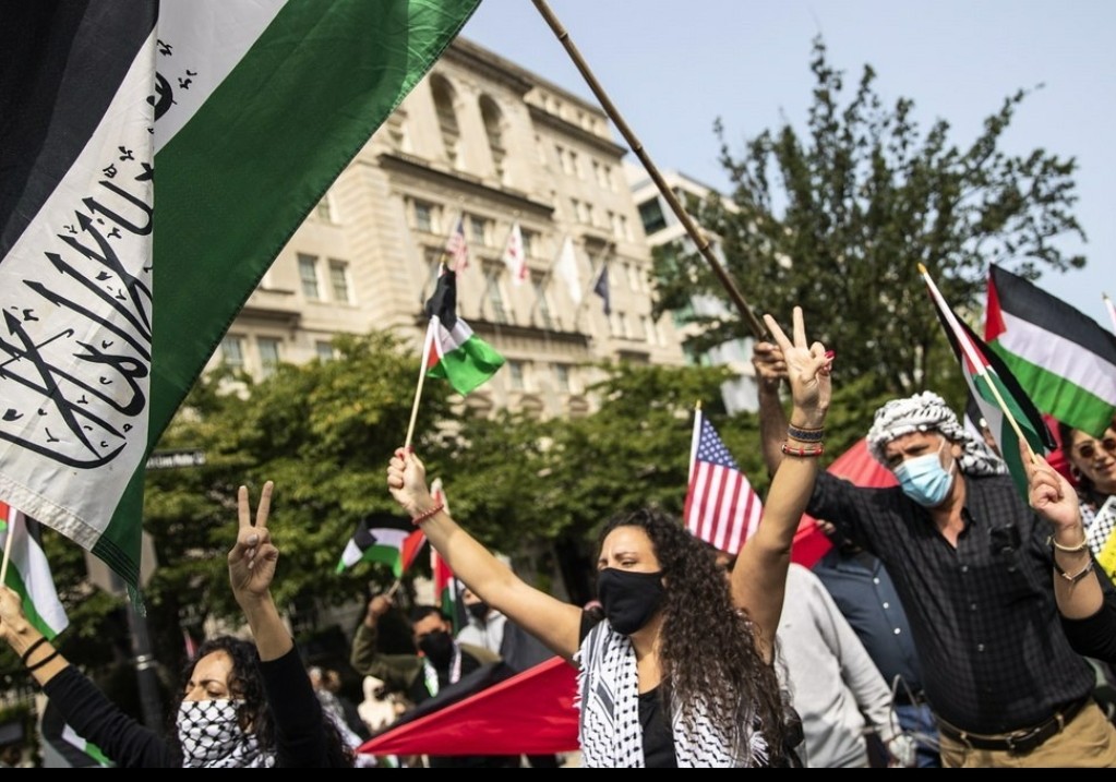 صور مظاهرات في محيط البيت الأبيض بواشنطن رفضاً لإتفاق العار التطبيعي بين الإمارات والبحرين والكيان الإسرائيلي.