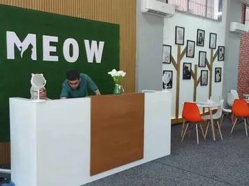 حمل المقهى اسم "مياو كات كافيه" يقدم لرواده السعادة ويسرب الطاقة السلبية التي تحاوطهم ويخلق لديهم طاقة إيجابية، بحسب معبد، والتي تهوى من صغرها تربية القطط والاهتمام بها، وتعرف جيدًا مقدار الراحة النفسية التي تحققها مداعبة هذه المخلوقات الرقيقة.