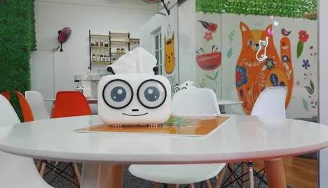 ويقدم المقهى لرواده مشروبات ساخنة وباردة ومثلجات بأسعار زهيدة، ويحتوي على جزء زجاجي خاص بالقطط، فيما يُسمح للزائرين بالدخول إليهم واللعب معهم، كما تم تخطيط المكان ليبعث الطمأنينة والراحة، حيث استعانت برسام خاص للرسم على الحوائط، فيما استخدمت أدوات وديكورات مبهجة.