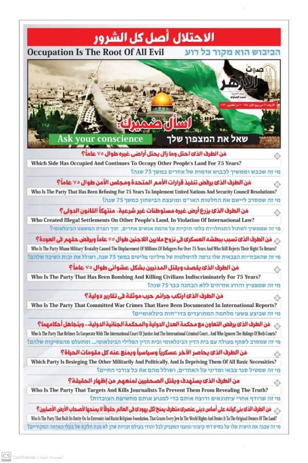 أصدرت مجلة صوت الأزهر التي تصدر عن الأزهر الشريف في مصر رسالة لإسرائيل بثلاث لغات من بينها اللغة العبرية