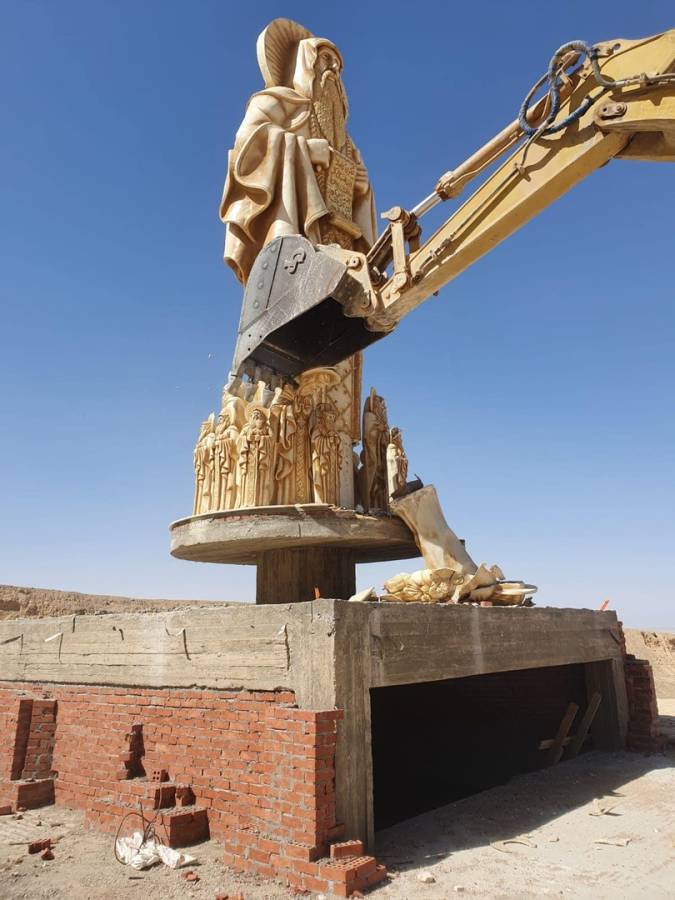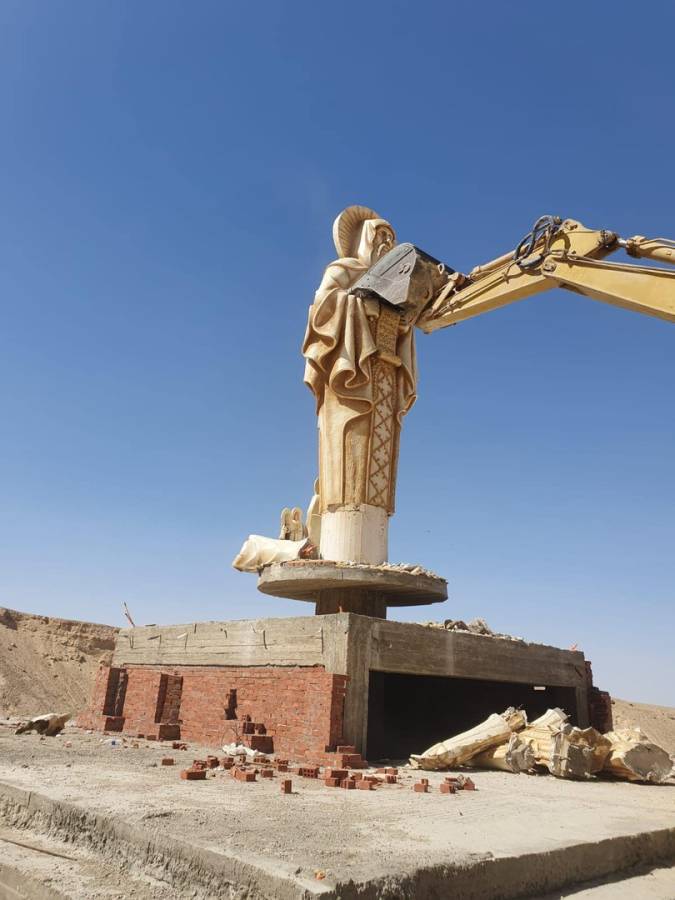 وتداول عدد من مستخدمي مواقع التواصل الاجتماعي صور إزالة التمثال من مدخل دير القديس الأنبا أنطونيوس العامر بالبحر الأحمر.