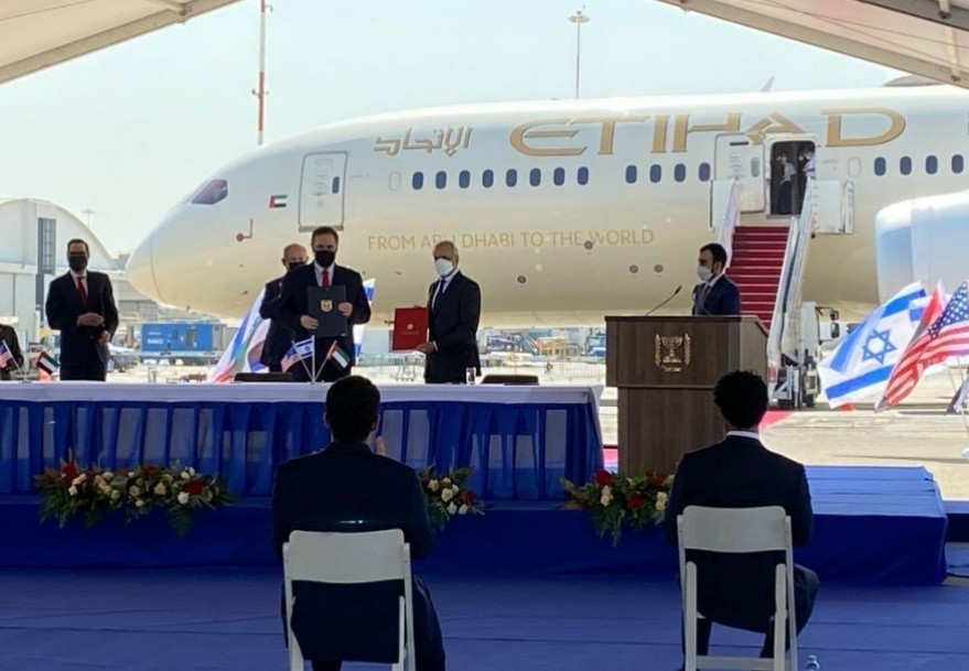 وقال المتحدث باسم رئيس الوزراء الإسرائيلي بنيامين نتنياهو، أوفير جندلمان في بيان له إن "رئيس الوزراء نتنياهو سيعقد اليوم قمة ثلاثية بحضور وزير الخزانة الأميركي ستيفن مينوتشين ووزير الدولة الإماراتي للشؤون المالية عبيد حميد الطاير" وأضاف جندلمان إنه "سيتم خلال القمة التوقيع على اتفاقيات في مجالات الطيران وحماية الاستثمارات والإعفاء من تأشيرات الدخول والعلوم والتكنولوجيا"،