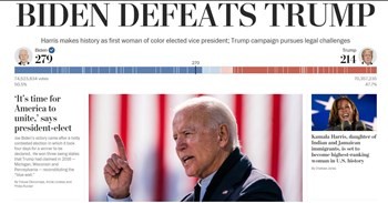 شاركت الصحف الأميركيّة عنواناً رئيسيّاً بعد إعلان هوية الرئيس الأميركي "بايدن هزم ترامب".