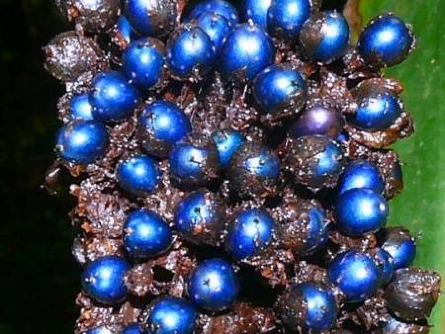 يشير الباحثون إلى أن اللون الأزرق في هذه الثمرة أكثر شدة من معظم الألوان التركيبية المعروفة في الكائنات الحية.