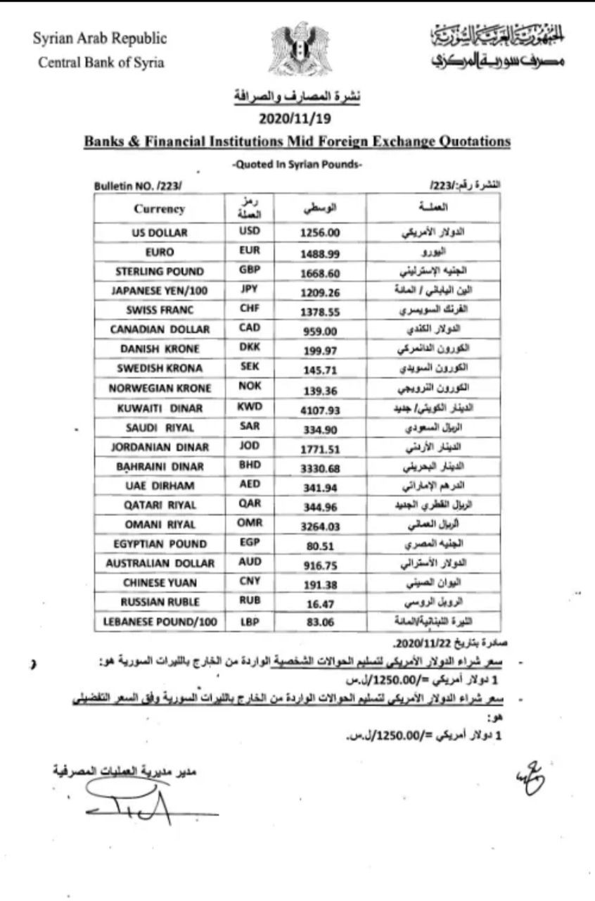 وقفز سعر الدولار في سوريا مقابل الليرة السورية واسعار العملات في سوريا اليوم الأحد 22-11-2020 في تعاملات السوق السوداء في ظل الانهيار الاقتصادي في سوريا وعقوبات أمريكية متواصلة على الاقتصاد السوري.