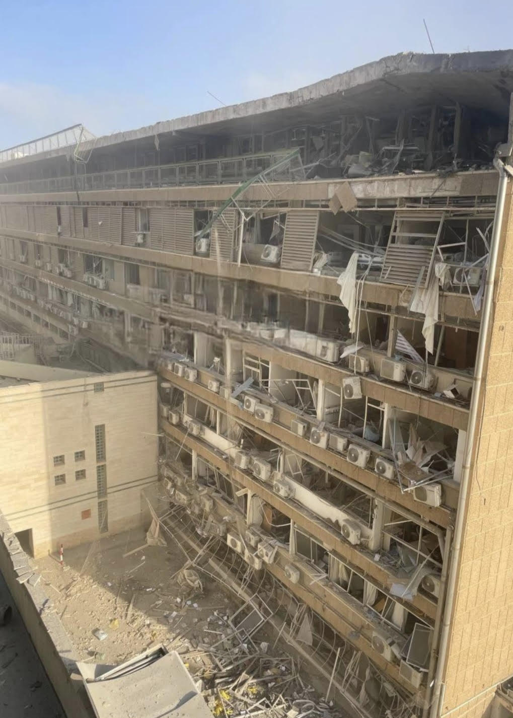 حاولت الماكينة الإعلامية الإسرائيلية، استغلال إصابة مستشفى "سوروكا" لتأليب الرأي العام الدولي، بزعم استهداف منشأة طبية. لكن التدقيق في طبيعة الدمار (كما يظهر في الصورة) يكشف عن موجة انفجارية لا تتركها إلا الرؤوس الحربية الثقيلة.