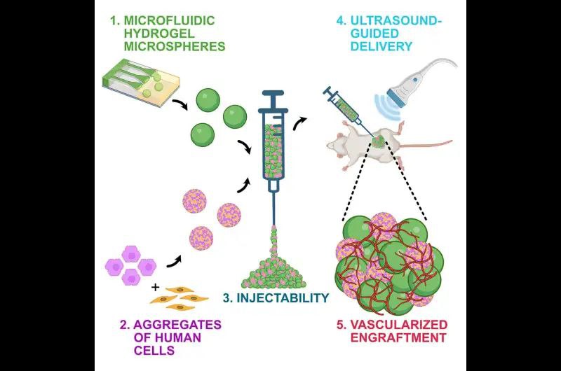 تعمل هذه الكرات المجهرية كبيئة هندسية داعمة تحافظ على تماسك الخلايا وتساعدها على الارتباط بالأوعية الدموية المحيطة بسرعة.
