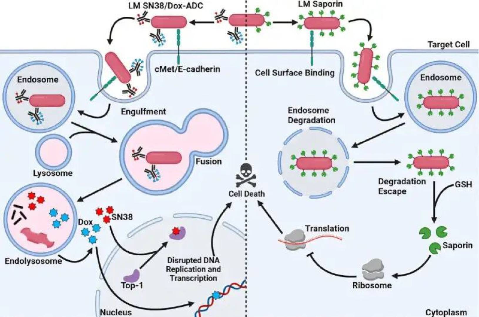 إطلاق السم داخل الخلية لتدمير الورم بشكل مباشر دون الإضرار بالخلايا السليمة.