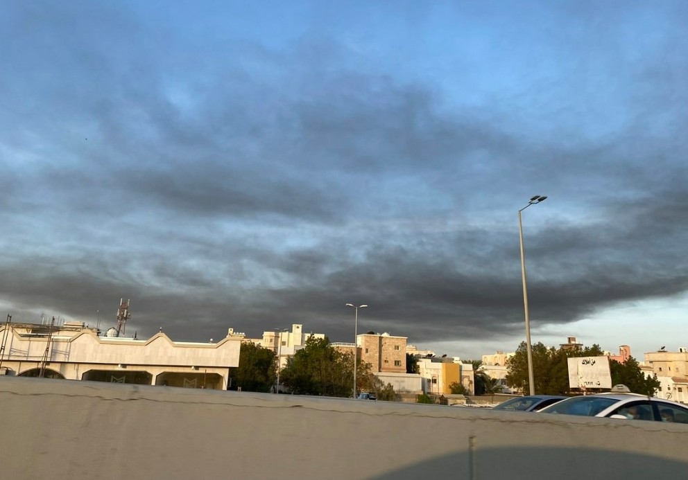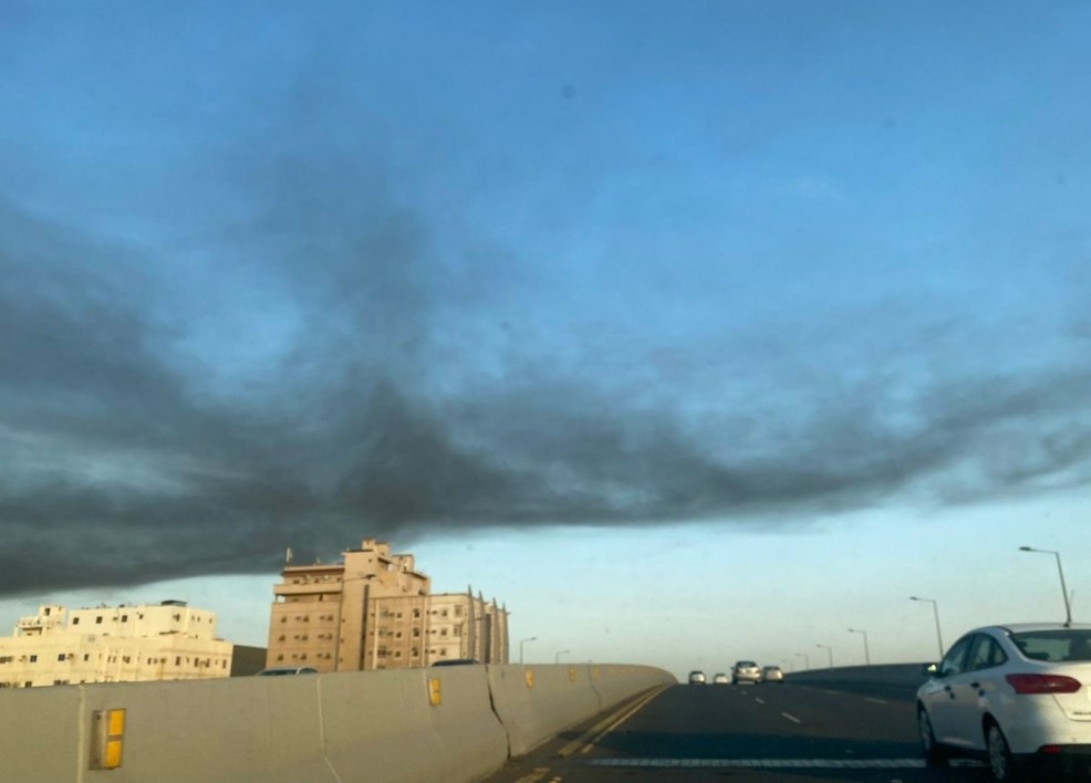 سحب سوداء تغطي سماء مدينة جدة السعودية يعتقد انها ناجمة عن النيران التي اشتعلت في ناقلة النفط :