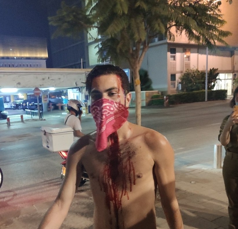 شاي سيكلر، متظاهر يقول إنه تعرض لاعتداء بالسكاكين من أنصار نتنياهو خلال احتجاجات ضد وزير الأمن العام أمير أوحانا، في تل أبيب، 28 يوليو، 2020