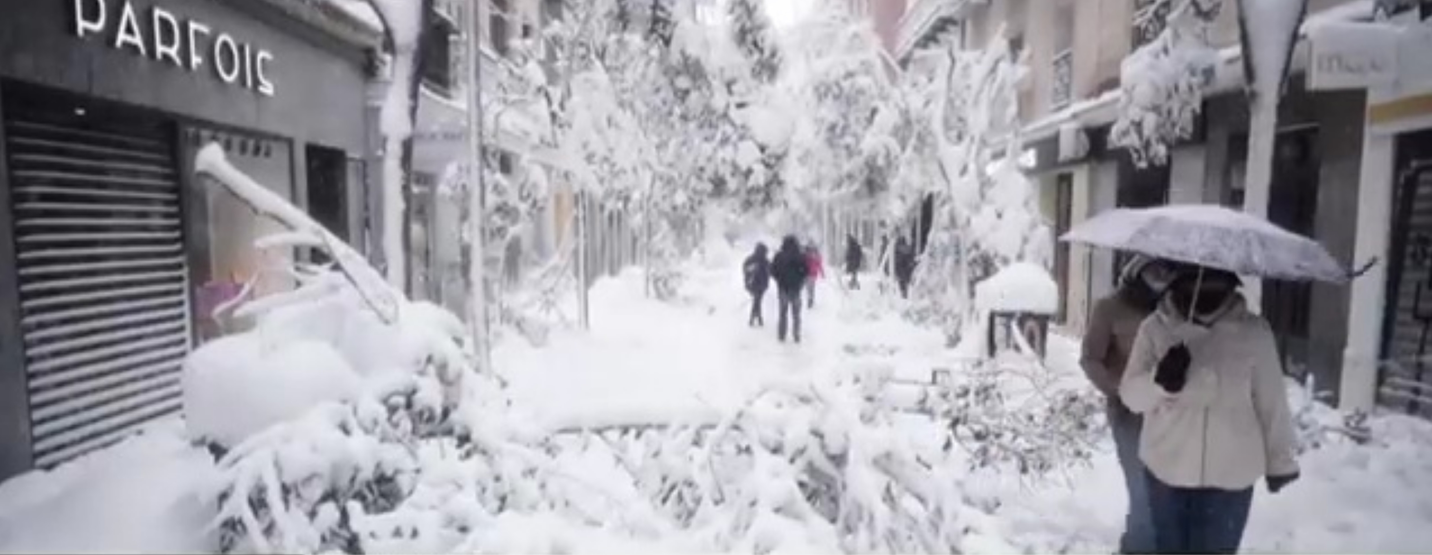 وتشهد إسبانيا سقوط أكبر كمية من الثلج منذ 1971، ما أدى إلى إعلان الإنذار بالمستوى الأحمر صباح السبت في خمس مناطق من وسط البلاد من بينها منطقة مدريد