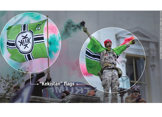نشرت شبكة "سي أن أن" الأمريكية تقريرا، تطرقت فيه إلى الجماعات التي اقتحمت الكونغرس، والمعتقدات التي يؤمنون بها، ورموزهم وأعلامهم، بعد أن قرروا التحول من متظاهرين مسالمين، إلى متطرفين أظهروا كراهيتهم وتطرفهم.