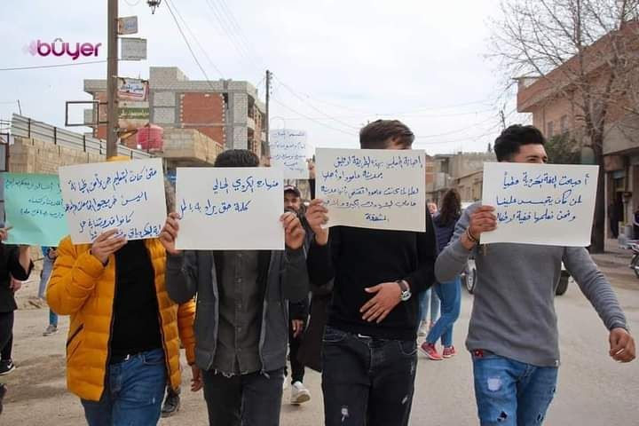 خرجت اليوم مظاهرات حاشدة في مدينة عامودا بريف الخسكة شمال شرق سوريا نظمها مجموعة من الطلاب والمدرسين احتحاجا على ممارسات قوات سورية الديموقراطية ضد الدارسين والمدرسين لمناهج وزارة التريية السورية.
