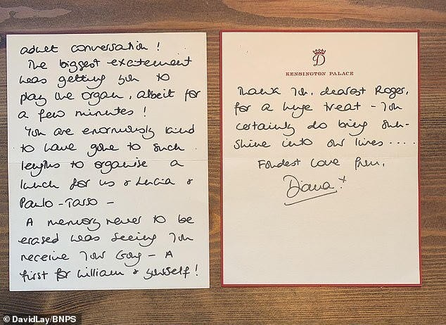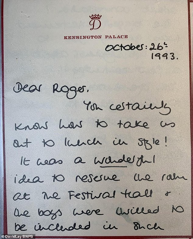 وكتبت ديانا رسالة أخرى في مايو 1992 إلى صديقها روجر برامبل، عمدة وستمنستر السابق، تحدثت الأميرة خلالها عن وجبات الغداء والشمبانيا التي اعتادوا الاستمتاع بها.