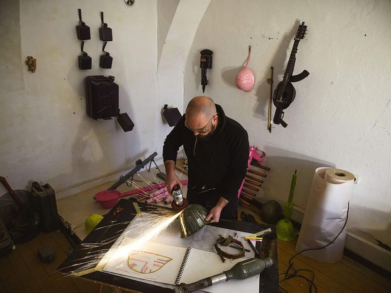 نجح نحّات صربي في تحويل أسلحة حرب قديمة ومخلفات عسكرية إلى أدوات موسيقية تحمل معاني الحياة والسلام.