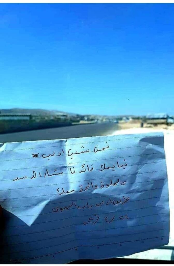 ضجة في ادلب..ورقة مؤيدة للرئيس الأسد تخيف مسلحي المدينة