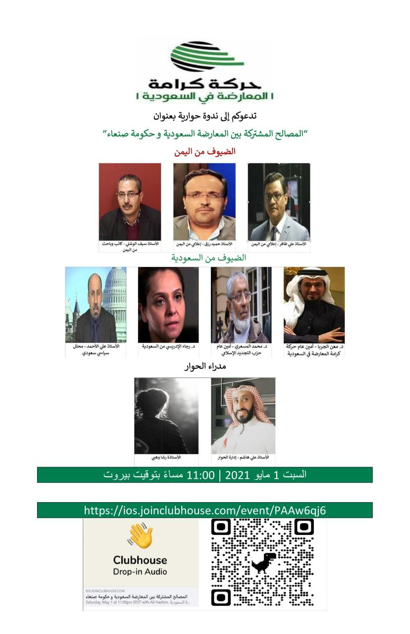 سوف تكون الندوة على برنامج Clubhouse مساء يوم السبت القادم