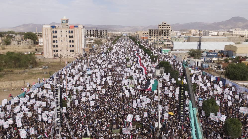 في زمن الهرولة والتطبيع يأبى اليمنيون إلا أن يقولوا كلمتهم وهي الموقف الثابت والمبدئي لليمنين تجاه القضية الفلسطينية ونصرة الشعب الفلسطيني حتى استعادة كامل أراضيه المغتصبة وإقامة دولته المستقلة على كامل ترابه وعاصمتها القدس الشريف.. و ها هي الآلاف من الجماهير اليمنية تشارك في مسيرة الاحتفال بمناسبة يوم القدس العالمي في العاصمة صنعاء وعدد من عواصم المحافظات اليمنية تحت شعار #القدس_اقرب.