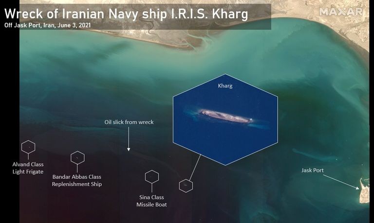 ونقل موقع "معهد البحرية الأمريكية" عدة صور للسفينة التقطتها شركة ماكسر (Maxar) لتكنولوجيا الأقمار الاصطناعية.