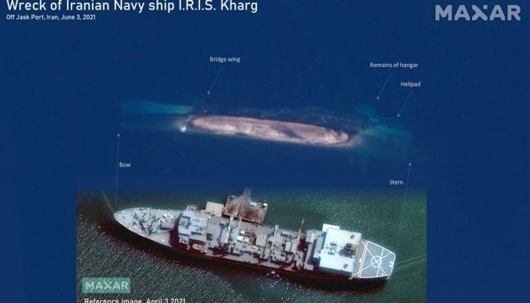 والأربعاء، غرقت السفينة "خارك" في ميناء جاسك جنوب، بعد الفشل في إطفاء الحريق الذي اندلع على متنها.