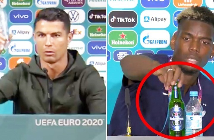 وبعدها بيوم واحد، أزاح بول بوجبا لاعب وسط منتخب فرنسا، زجاجة جعة من أمامه عقب فوز فرنسا 1-0 على ألمانيا.
