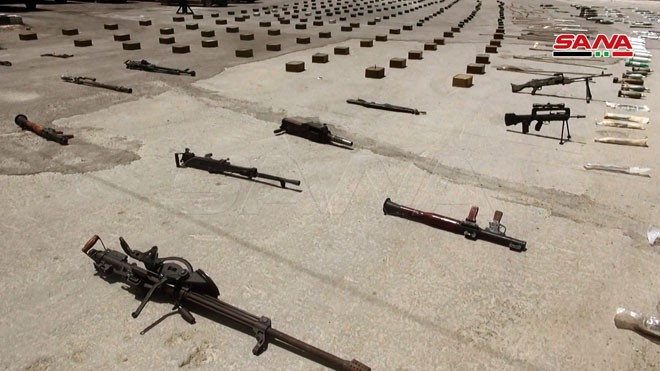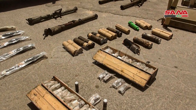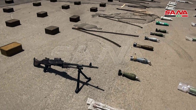 وقال مصدر في الجهات المختصة لوكالة "سانا" الرسمية: إنه "خلال القيام بتمشيط ما تبقى من المناطق التي حررها الجيش من الإرهاب في المنطقة الجنوبية لتأمينها حفاظاً على حياة المدنيين وبالتعاون مع الأهالي الشرفاء تم العثور على كميات كبيرة من الأسلحة والذخائر.