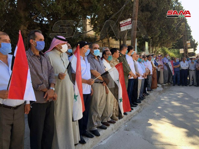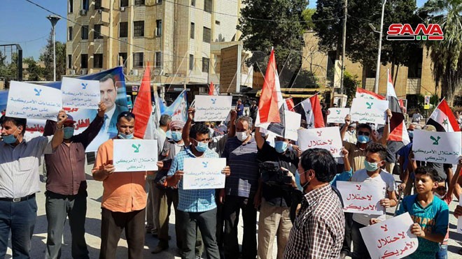 ودعا المشاركون في الوقفات الاحتجاجية إلى مقاومة الاحتلال الأمريكي والالتفاف حول الجيش وتفعيل دور المقاومة الشعبية لطرد المحتل الذي ينتهك السيادة السورية ويسرق الثروات.